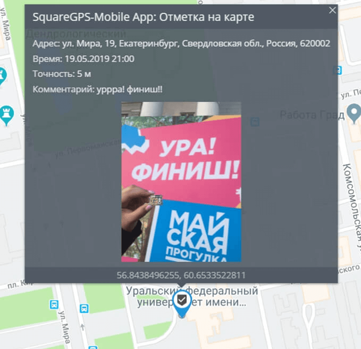 По правилам отмечались на каждом КП, чтобы нам засчитали маршрут. А дополнительно, для развлечения, делали еще отметки в приложении, с привязкой к месту: селфились, добавляли комментарии, фотографировали забавные моменты и конечно заветный Финиш.