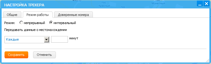 Пользователь может самостоятельно настроить периодичность отправки GPS-трекером данных на сервер: через заданный интервал (а) времени (например, каждые 15 секунд) или (б) расстояния (например, каждые 100 м пути – значение по умолчанию).